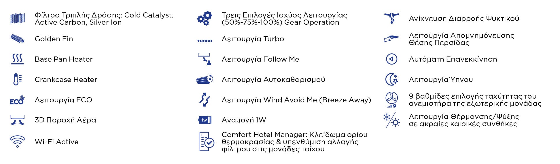 Mε μοντέρνο και κομψό σχεδιασμό της εσωτερικής μονάδας, φιλικό προς το περιβάλλον ψυκτικό μέσο R-32, αλλά και λειτουργίες Wi-Fi Active και 3D Airflow, το COOLEASY είναι